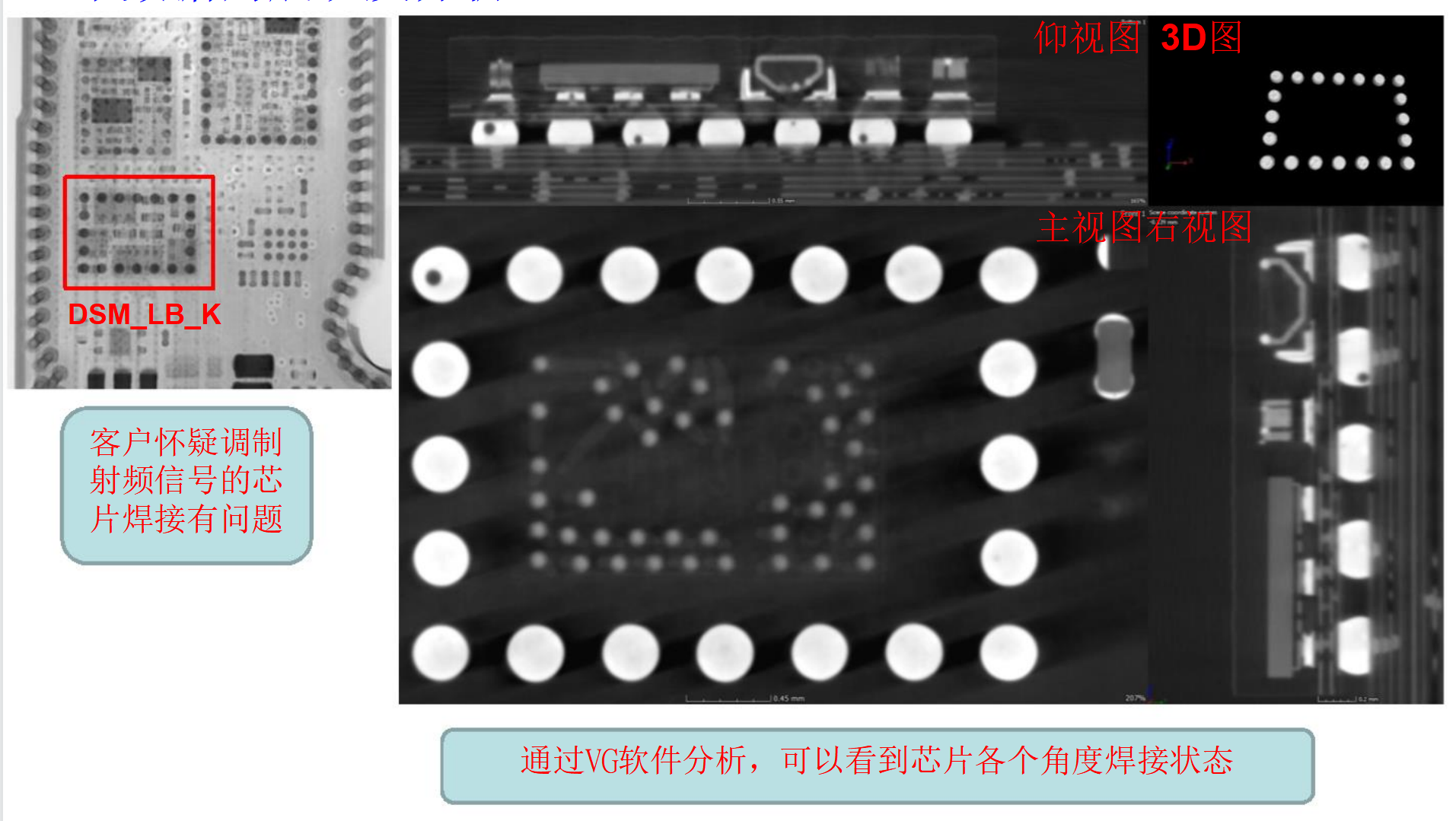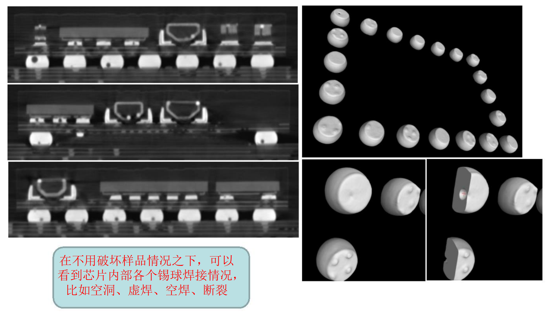 使用工业CT可以不用拆卸,直观了解产品的二维与三维局部整体、透视或截面分析图,可分析与测量组件间装配形成的缝隙,评估工艺,寻找失效原因,解决相关问题,降低研发的投入成本。